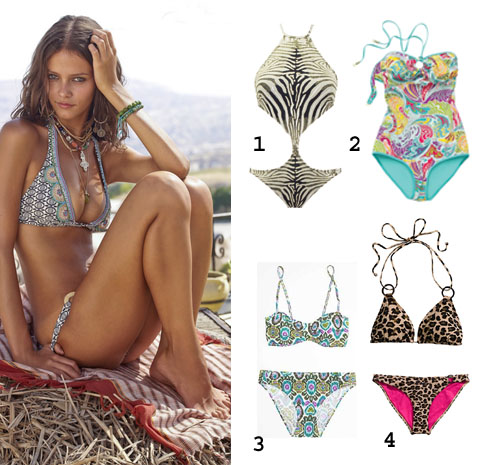 1. Lindex, 1099 руб. 2. Rasurel, 8870 руб. салоны Эстель Адони 3. Etam, 1499 руб. 4. Lindex, 1078 руб. 5. Accessorize, 1450 руб. Главное фото: Sports illustrated. Этно Привет из дикой Африки: стиль сафари необычайно популярнен этим летом не только в коллекциях одежды, но и в купальниках. Нейтральные цвета песка, роскошных цветов и сдержанной зелени саванн дополняются яркой расцветкой шкур африканских хищников. Главные цвета «сафари» - сочетание черного, коричневого и белого. Еще один модный этнический вариант - красочный узор «пейсли», или «турецкий огурец». Когда-то в древней Персии его использовали только для одеяний королей. Этим летом «огурец» покорит все пляжи мира. Очень эффектно смотрятся туники, расписанные «пейсли» - настоящее одеяние восточных красавиц.
