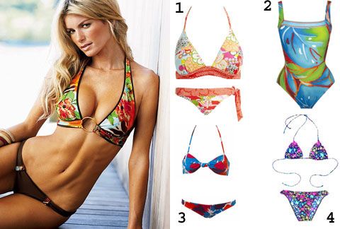 1. Gottex, 9306 руб. салоны Эстель Адони 2. Matthew Williamson for H&M, 1199 руб. 3. Lindex, 1078 руб. 4. H&M, 999 руб. Главное фото: Sports illustrated. Цветы Яркие, тропические, манящие в далекие края и неведомые земли – такие цветы расцветают на купальниках и бикини этого сезона. Собственно, купальники в цветочек далеко не новинка – они пользуются бешеной популярностью из сезона в сезон. Но каждый раз дизайнеры умудряются придумать что-то новенькое. В этом сезоне в моде как крупные, броские цветы, так и маленькие изящные бутончики.