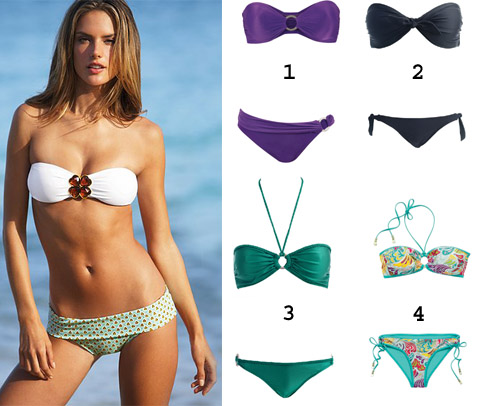 1. Women’s secret, 1699 руб. 2. Lise Charmel, 12 466 руб., салоны Эстель Адони 3. Gideon Oberson, 6700 руб., салоны Эстель Адони 4. Oasis, 2790 руб. Главное фото: Victoria’s secret. Бикини без бретелек В этом сезоне популярны также бикини с верхом без бретелек (или со съемными бретельками), очень напоминающие бикини 70-х и 80-х годов. Отсутствие бретелек вовсю компенсируется оригинальными деталями отделки: оборки, бантики, броши, кольца.