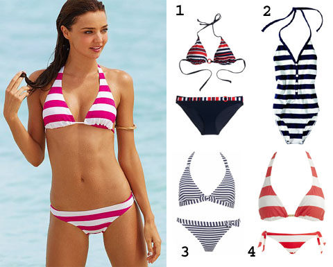 1. Etam, 1499 руб. 2. Je suis, 8340 руб. Салоны Эстель Адони 3. Monsoon, 1750 руб. 4. Matthew Williamson for H&M, 1199 руб. Главное фото: Victoria’s secret. Моя морячка! Морская тема по-прежнему актуальна: купальники в сине-белую или красную полоску, в качестве украшений – декоративные якоря, штурвалы и даже черепа с костями. Выбирайте, кем вы будете этим летом: томной красавицей, совершающей круиз на яхте или отчаянной пираткой Карибского моря.