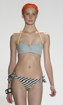 Лето-201014.09.2009 08:38![]() На Нью-йоркской неделе моды дизайнер Rosa Cha представил купальники под деним, из соломки, но главенствовал белый цвет. Первыми на подиуме появились манекенщицы в белых цельных и раздельных купальниках. Купальники украшал черный мелкий горох или они были отделаны черными деталями, например, был представлен белый цельный купальник с черными чашками. ![]() ![]() Затем появились манекенщицы в купальниках из ткани, имитирующей джинсовую выцветшую ткань и смотрелись как перешитые из джинсов. Эта же тенденция – сделать из старого новое – прослеживались еще в нескольких моделях. Например, один комплект выглядел как сшитый из разных материалов, найденных дома: бюстгальтер из одного материала, бретели на нем – из другого, а трусы – из третьего. ![]() Под конец показа появились очень интересные модели сплетенных купальников. ![]() ©
