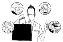 Менеджер всегда на стороне клиента. Продавца никто не поддерживает. Ты умирать будешь, а тебе скажут — иди работай. Поэтому даже если тебя будут посылать, ты должен улыбаться и кивать. Но выдержка вырабатывается годами. Если клиент проблемный, можно попытаться от него отвязаться: сказать, что занят, и попросить обратиться к другому продавцу. Бывают клиенты, которые заставляют работать с ними по 7 часов кряду: померяют каждую вещь, выберут самую дешевую, потом ещё скидку попросят и в итоге уйдут с пустыми руками.